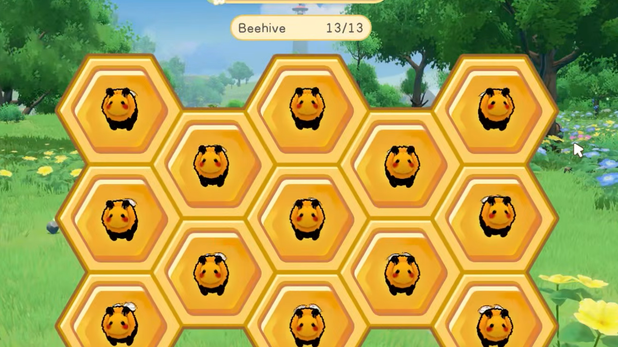 A Queen Bee is optional but valuable. She doesn't collect honey — her role is reproduction. Place her in the Beehive and feed her Royal Jelly, and she'll periodically produce new Bumblebee workers. A Queen Bee takes up seven of the hive's 13 slots and needs at least one empty slot to generate a new bee.