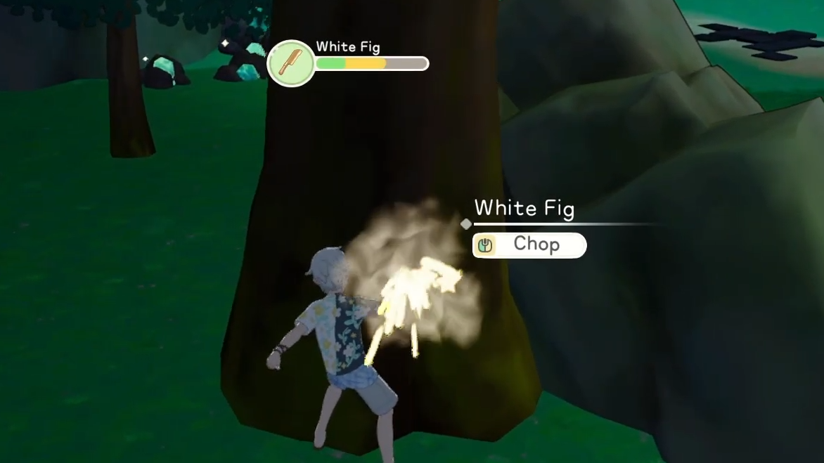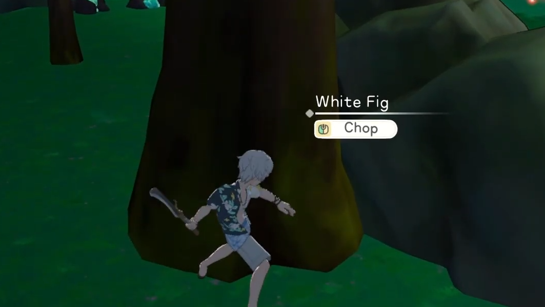 Despite the "giant tree" label, White Figs aren't dramatically larger than Banyan trees. They're distinguishable mainly by name when you approach them, not by some towering silhouette on the horizon. Each White Fig drops Premium Wood alongside Softwood and Hardwood, so you'll collect all three wood types from a single tree.