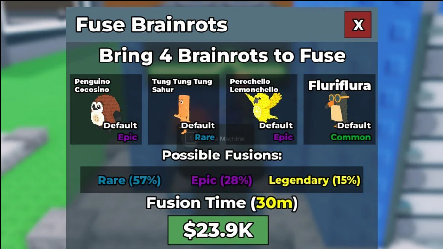 Step 3: Start the fusion to obtain a Brainrot that typically cannot spawn on the conveyor or in normal lucky blocks. Fuse-only outcomes diversify your roster.