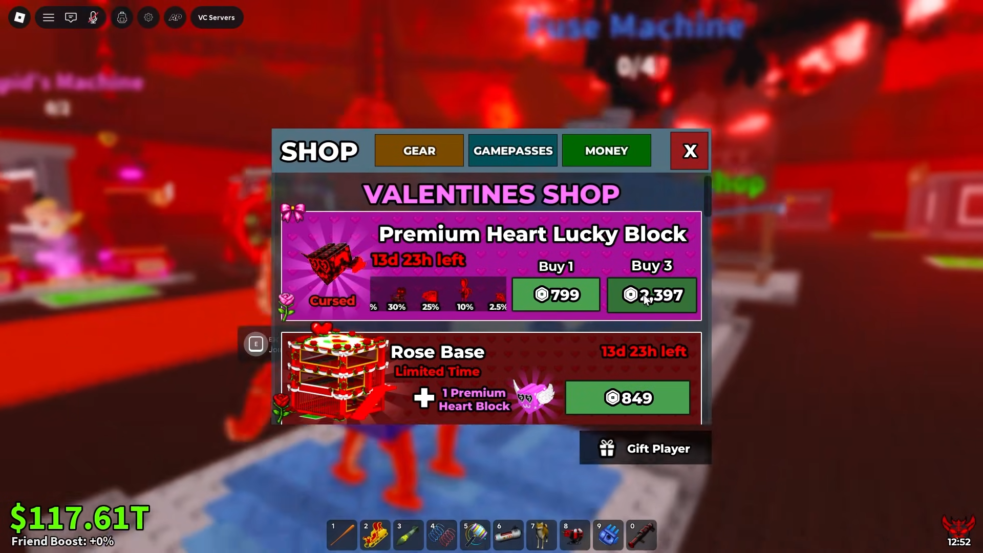 Premium Heart Lucky Blocks are available in the Valentine's shop for 799 Robux. These versions offer improved drop rates for higher-income Brainrots compared to standard Heart Lucky Blocks.