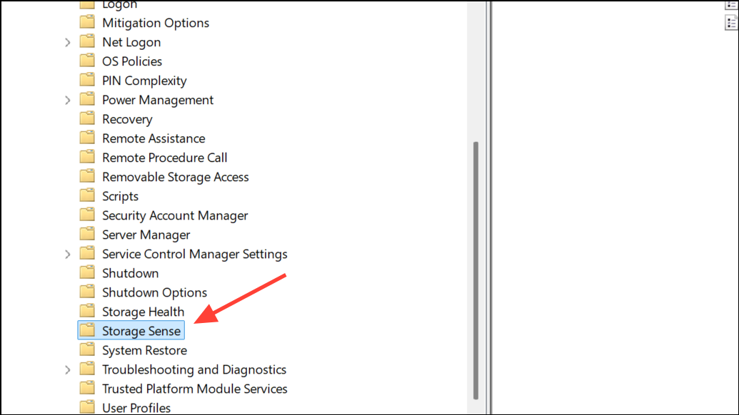 Step 2: In the left pane, navigate to Computer Configuration > Administrative Templates > System > Storage Sense.