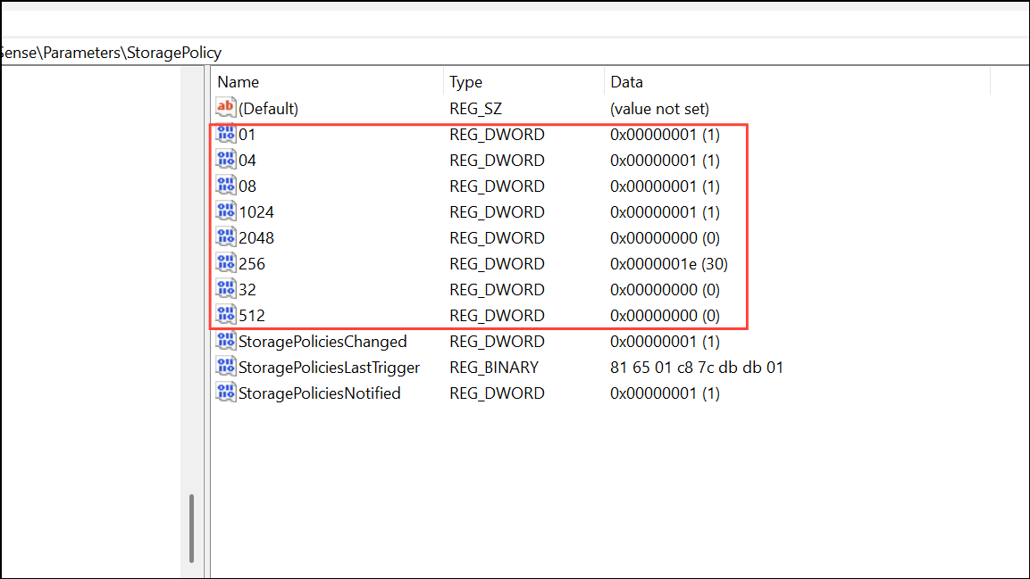 Advanced users can fine-tune Storage Sense’s behavior by editing the Windows Registry. This method is effective if Group Policy Editor is not available (such as in Windows 11 Home).