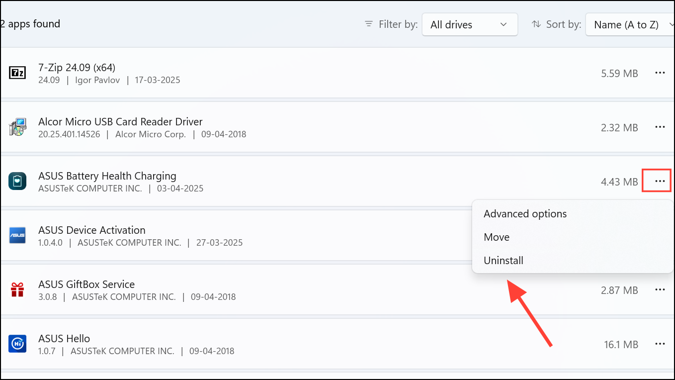 Step 3: Scroll through the list and uninstall any unwanted apps. Click the three dots next to an app and select Uninstall.