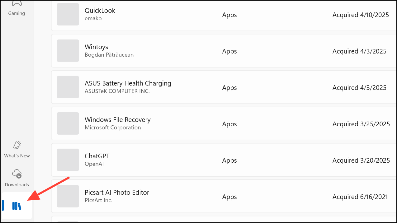 Step 4: Open the Microsoft Store, go to Library, and remove any unwanted apps listed there.