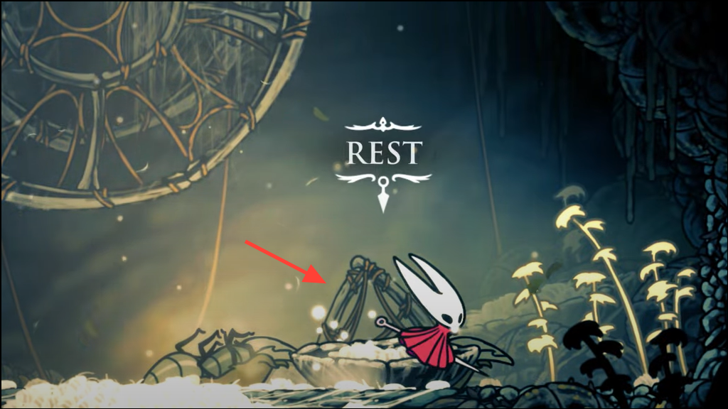 You’ll meet Styx in Sinner’s Road, a dark, cage‑strewn region branching from upper Greymoor. At the far east of the lowest level, clear two barking Muckroaches; the room shudders and Styx descends from the ceiling into a nest he’s been preparing. From that point on, you can rest on the nearby silken bed and return to collect the Silkeaters he grows over time.