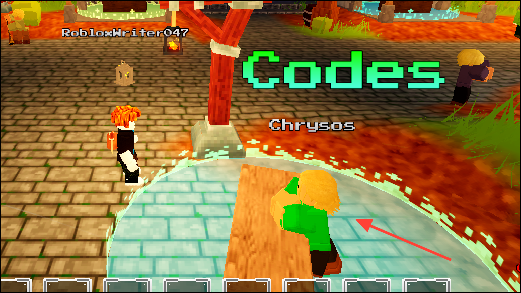 Step 2: From spawn, walk to the Codes NPC named Chrysos on the right side of the bridge/gate area.