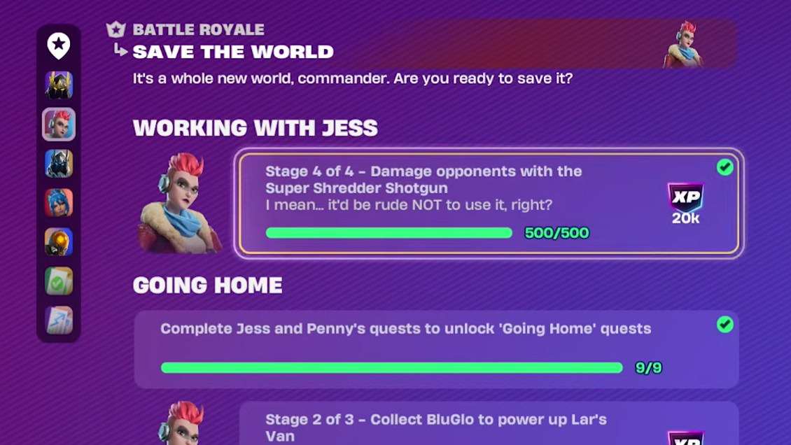 You have unlocked the weapon correctly when Jess's service menu shows a Super Shredder entry priced at 500 Gold Bars. If the option is missing or greyed out, one of the three starter quests is still incomplete. The most common miss is the "Visit 5 named locations" step, since landing at the same POI twice does not count toward new locations.