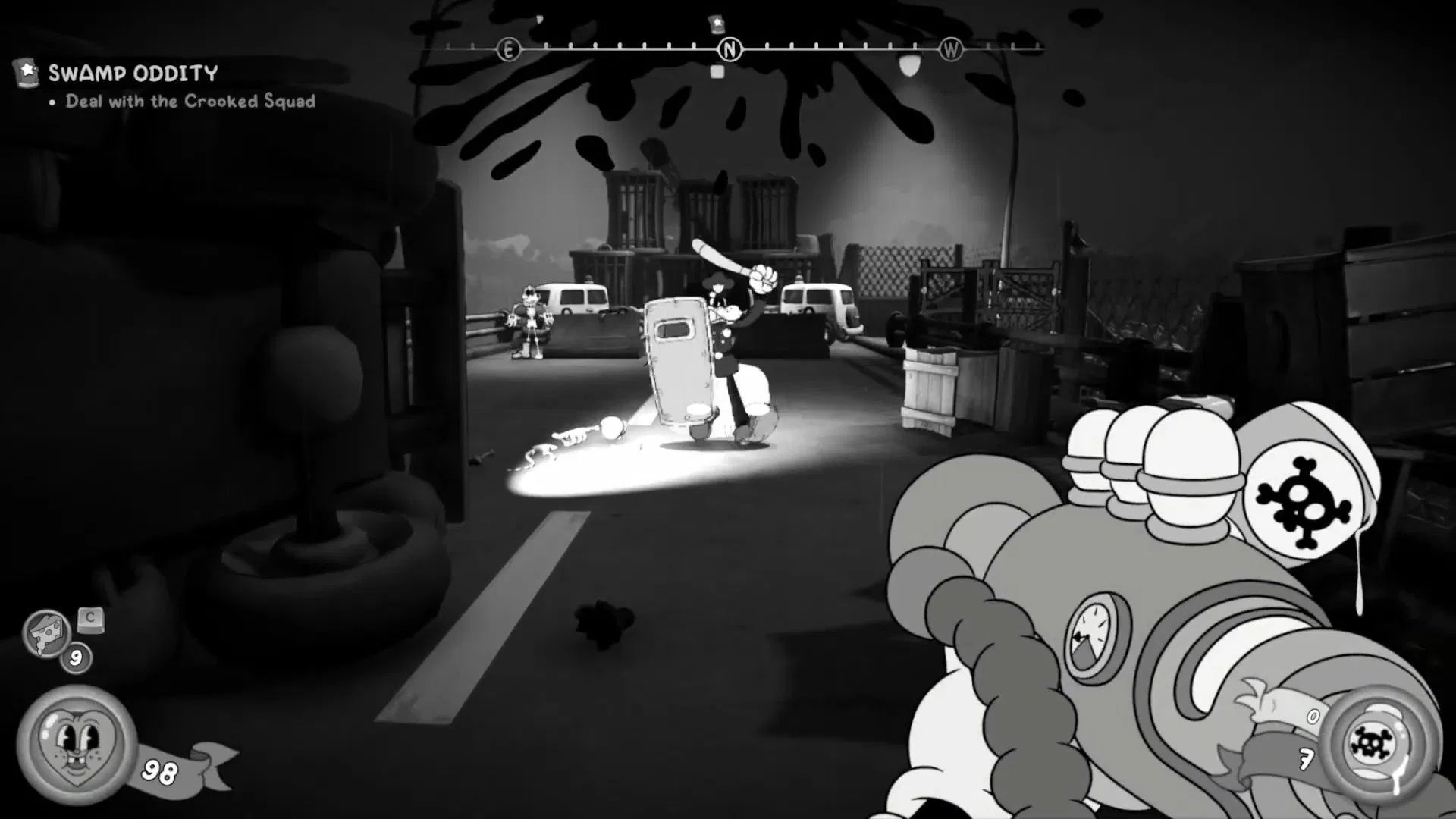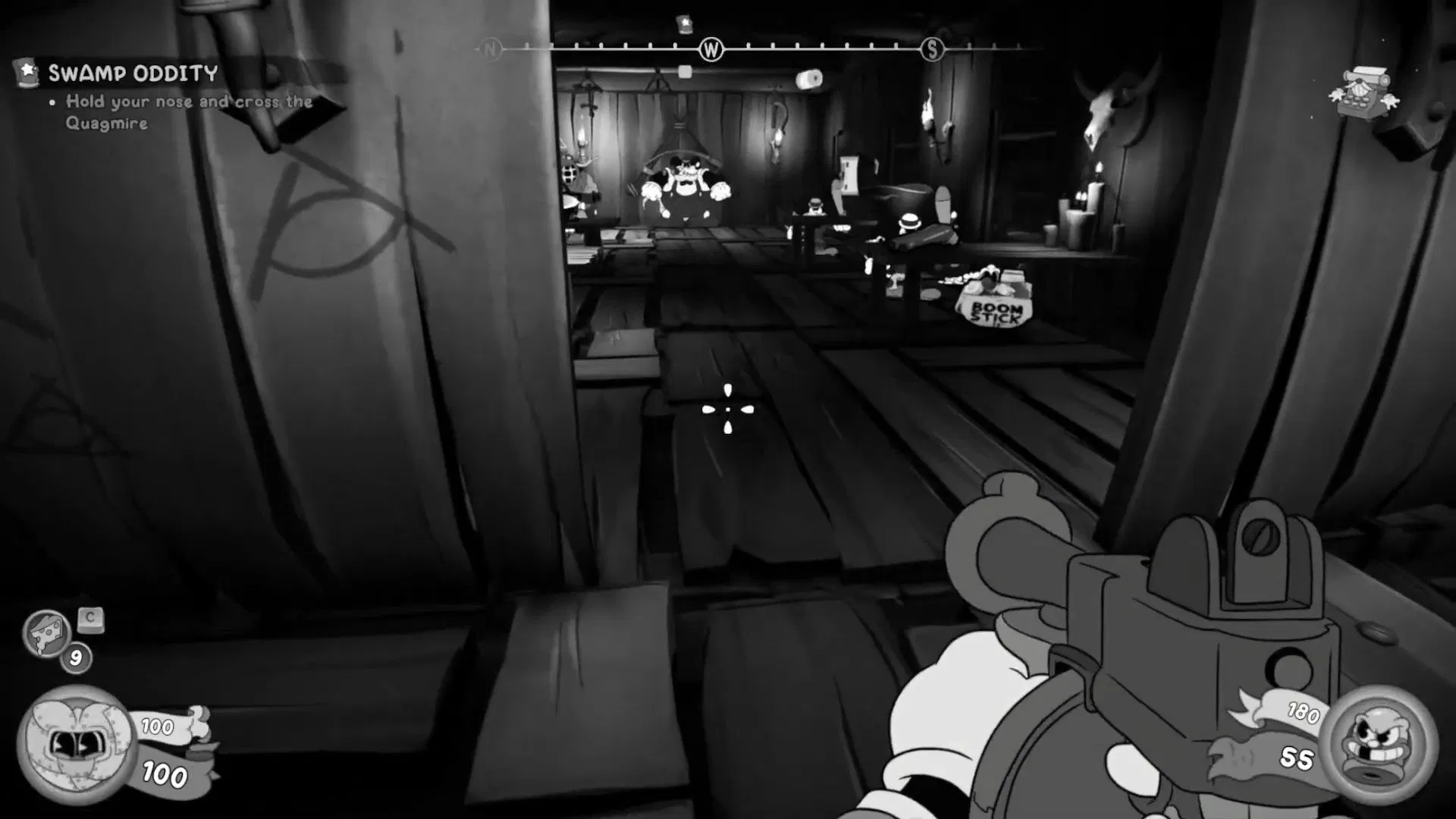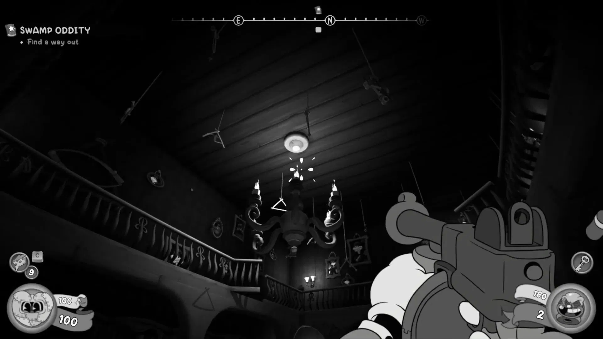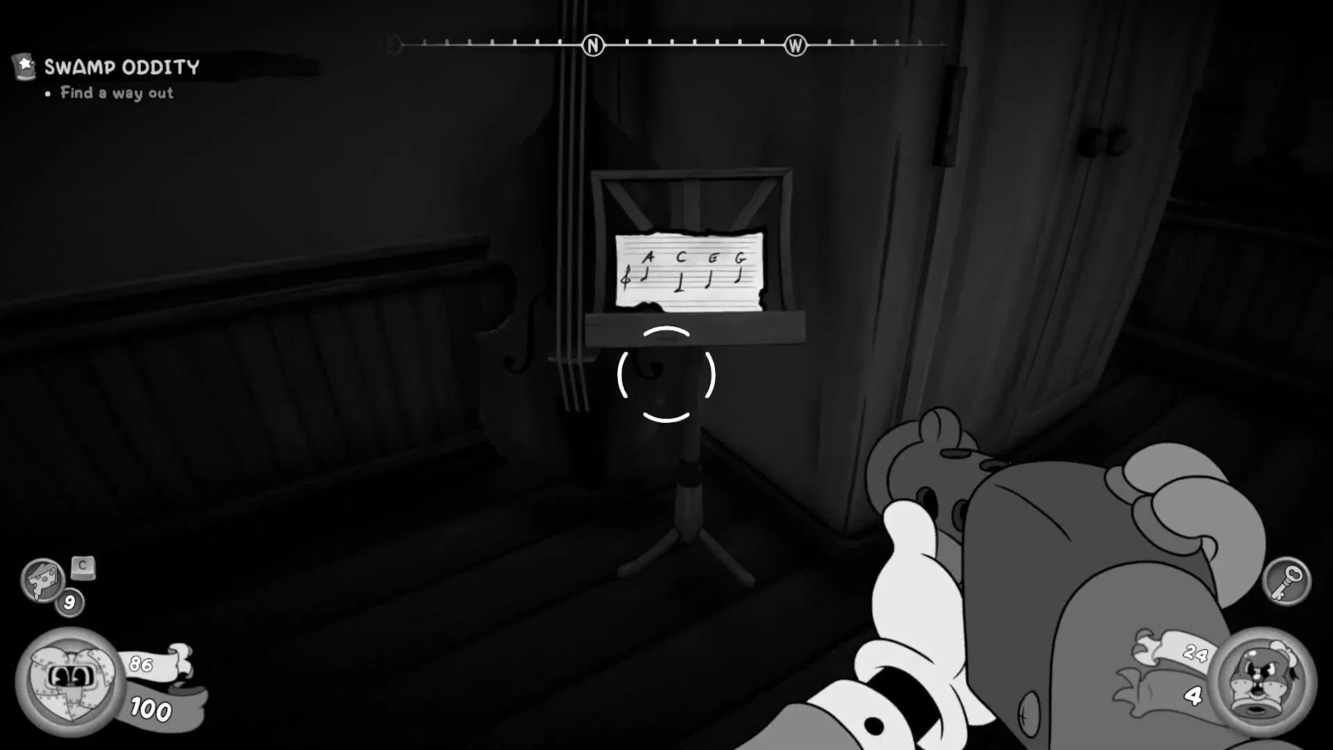 Swamp Oddity drops Jack Pepper into the Quagmire on the trail of the missing shrews, and the level mixes a stretch of open swamp combat with a key-hunting dungeon crawl through a haunted-feeling cabin. The path forks around a piano puzzle, several locked doors, and a garden statue, so the order of operations matters if you want to leave with the Diamond Shaped Key and a clean clue board.