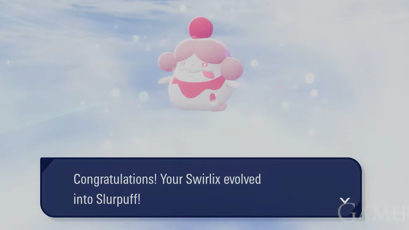 Step 3: Select the Swirlix holding the item and confirm the trade. The Pokémon will evolve into Slurpuff immediately after it arrives in your partner's game.