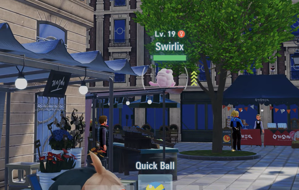 For players looking for a stronger variant, an Alpha Swirlix spawns at level 29 on the roof of a building west of the Nouveau Cafe in Magenta Sector 3. Swirlix may also appear atop market stalls, such as those near Nouveau Cafe Truck No. 2 in Bleu Sector 5, or inside 2-Star Hyperspace Wild Zones if you have accessed the Mega Dimension content.