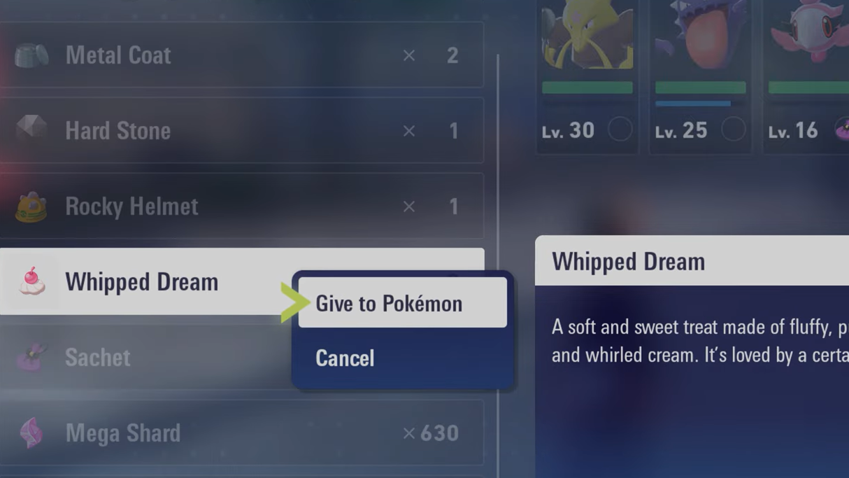 Step 1: Open your inventory and give the Whipped Dream to the Swirlix you intend to evolve.