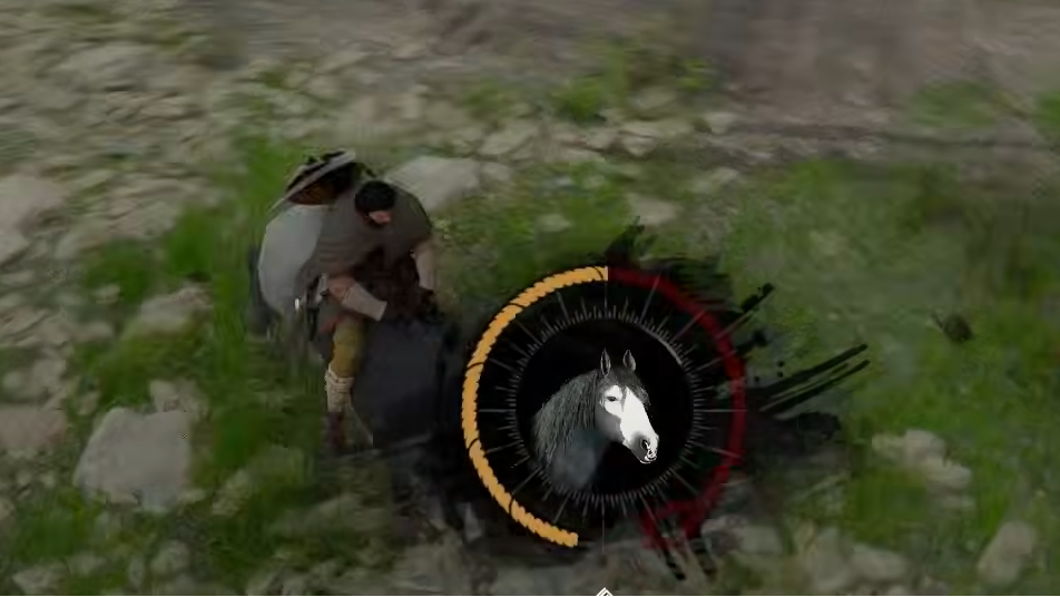 Step 2: Once you're on the mount's back, a circular progress indicator appears at the center of the screen. This circle needs to be filled completely with yellow to finish the tame. Watch which direction the mount bucks or pulls — if it lurches forward, yank the stick backward; if it veers left, push right. The key is always moving in the exact opposite direction.
