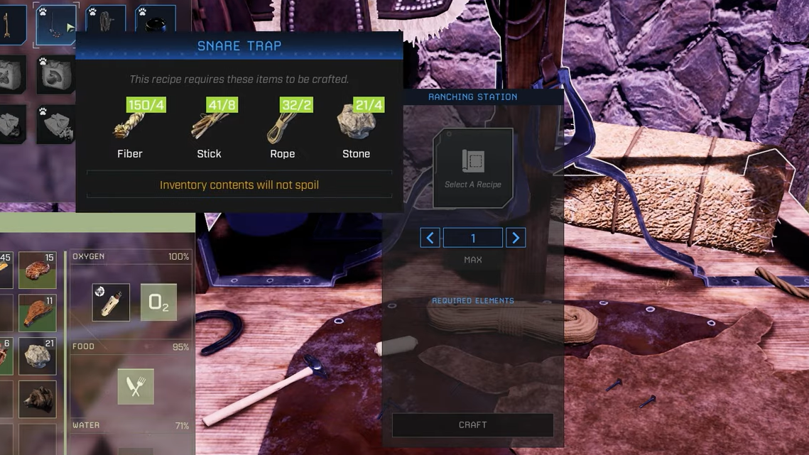 Step 1: Unlock the Ranching Station, Snare Trap, and Wolf Bait at level 10+, then craft one snare and several baits along with a basic stone or wood 2×2 shelter kit.
