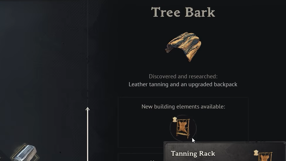 - You haven’t reached the Foothills yet, meaning neither the rack recipe nor Tree Bark is accessible.
