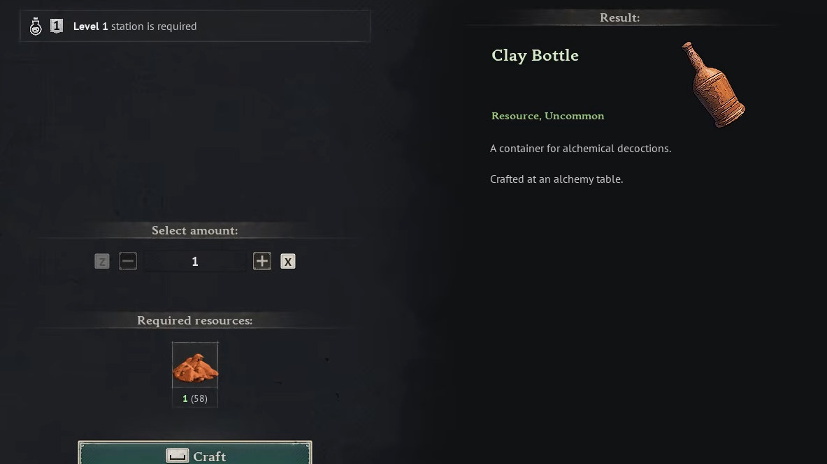 Step 1: Build the Alchemy Table and a supply of Clay Bottles. Clay Bottles are the reusable container the recipe draws from, so batch a handful before you start.