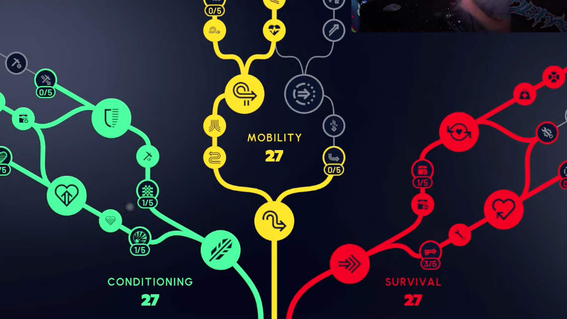 Respeccing requires completing the Expedition project, so early skill choices matter. If you're below level 30, prioritize Survival tree nodes first (Broad Shoulders, Looter's Luck, Agile Croucher) to accelerate loot acquisition and XP gains before investing heavily in Conditioning or Mobility.