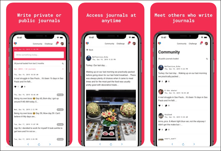The app has loads of other great features too like easy UI for writing, rewards for writing journals to keep you motivated, organized journals for easy access. And it is free to use!