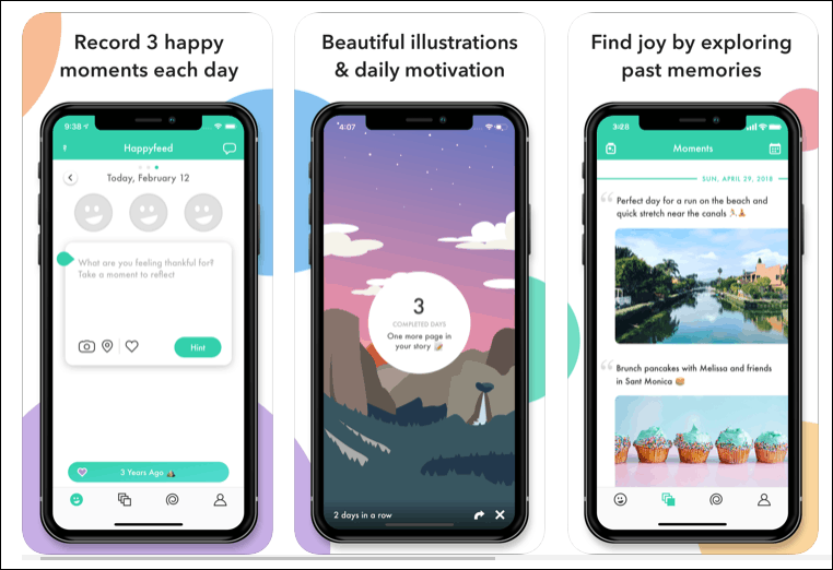 Happyfeed focuses on gratitude journaling. You have to record 3 happy moments every day in the app. As Cesare Pavese said, ” We do not remember days, we remember moments.” Even if you had a bad day, you must have had some happy moments and Happyfeed helps you focus on them to create a journal of happy memories to remember in the future. It helps you focus on the positive and become more resilient in harder times.