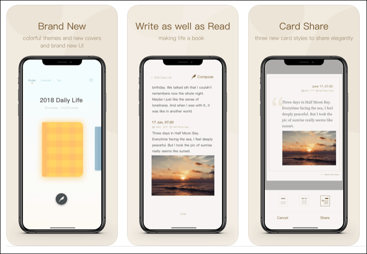 Card Diary is ‘App of the Day’ in over 80 countries and for good reason. With minimal design and light-weight UI, its focus is on making journaling an effortless yet fun activity. It is great for people who love aesthetically pleasing journals and is not cluttered with unnecessary functions that take away the focus from journaling.