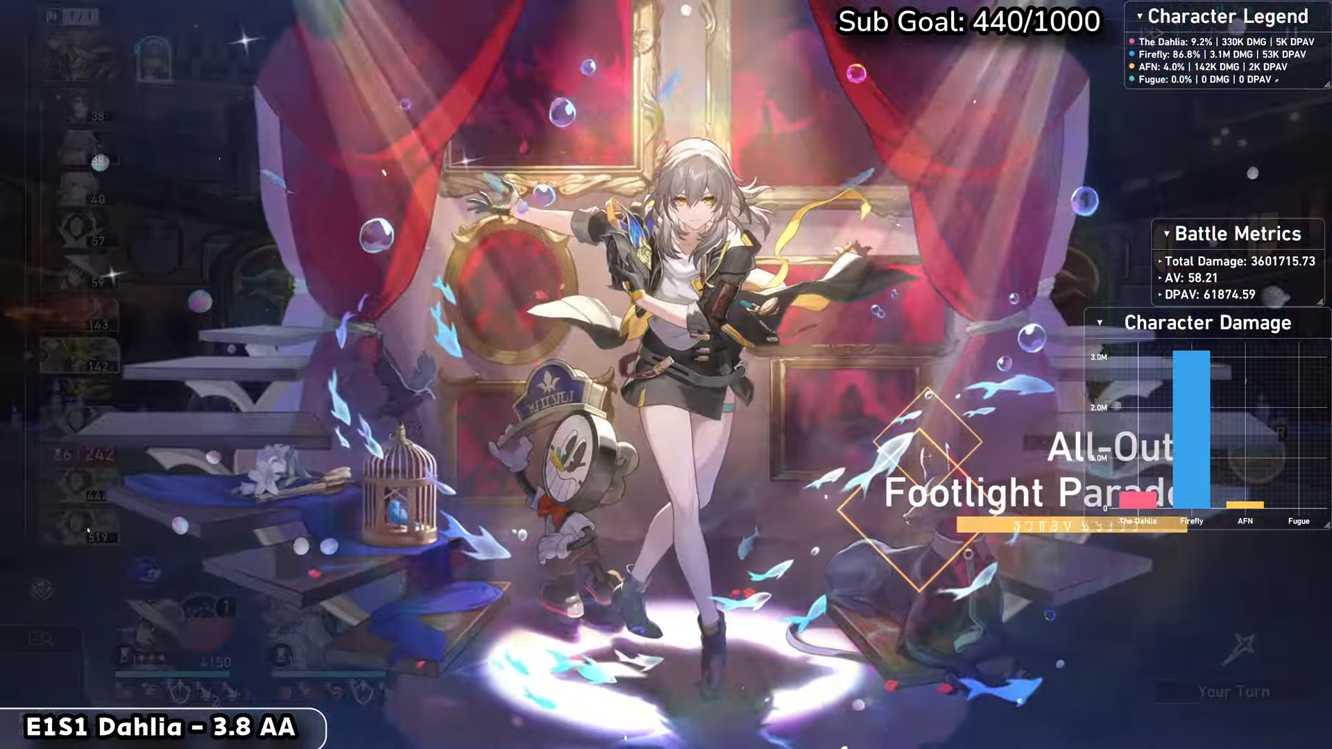 The fixed toughness reduction after the dance partner attacks has important practical implications. Against bosses with large toughness bars, that extra chunk helps you reach a full weakness break sooner and maintain a longer broken window. It also improves the pace at which Super Break damage is generated from The Dahlia’s zone and follow-up mechanics, because more toughness damage is being converted into Super Break DMG on each cycle.