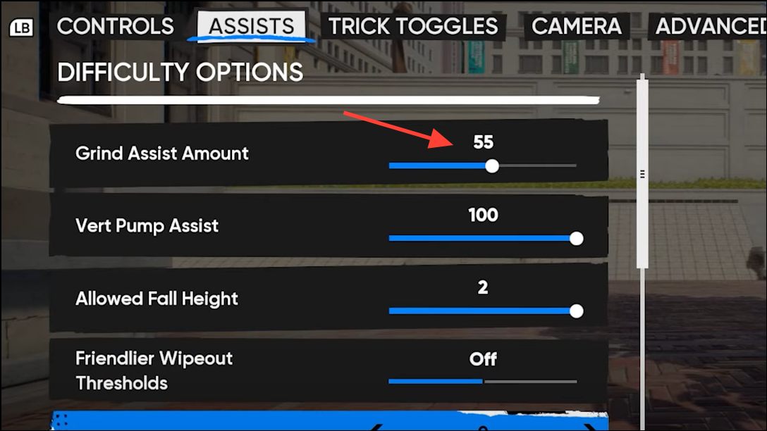 - Grind Assist / Alignment: Disable it. You’ll need to approach and lock in with intention, but you’ll stop fighting the game’s auto-correction on ledges and rails.