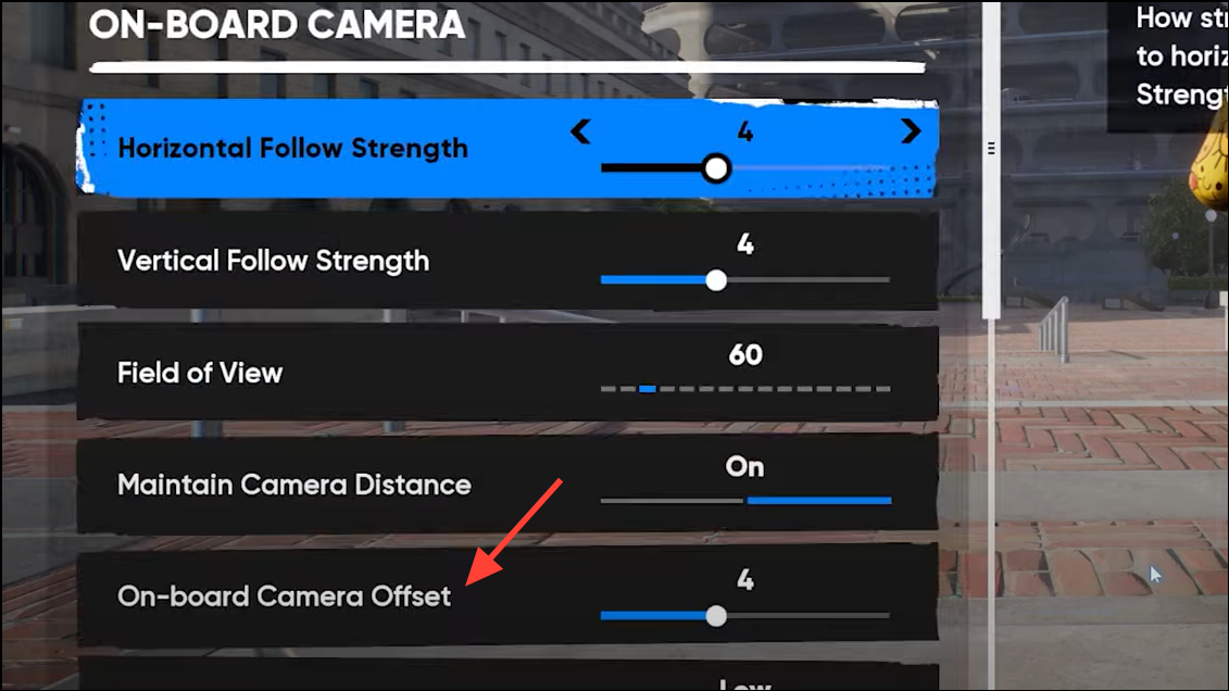 - Camera: Low on-board perspective