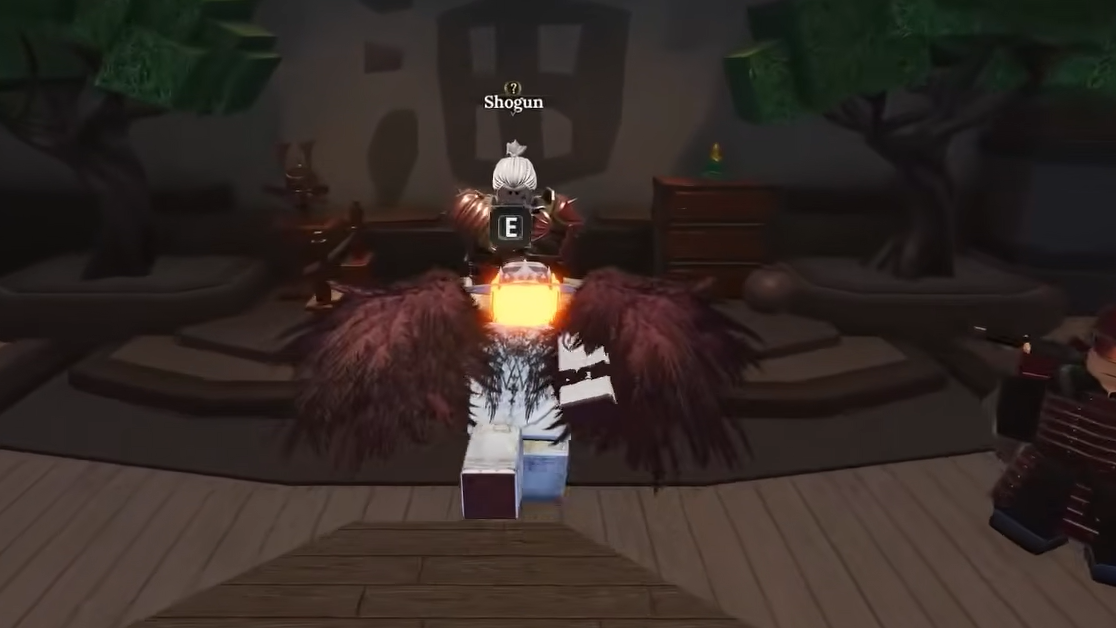 The Shogun sits on a throne inside a temple on a sub-area called Shogun's Island. From the Island 4 spawn point, head right through the gate, then take a right at the fork. After passing the guards, make another hard right through a second gate — you should see the Shogun's castle straight ahead. The temple entrance is flanked by lion statues, and the NPC waits inside the Hall of the Shogun.