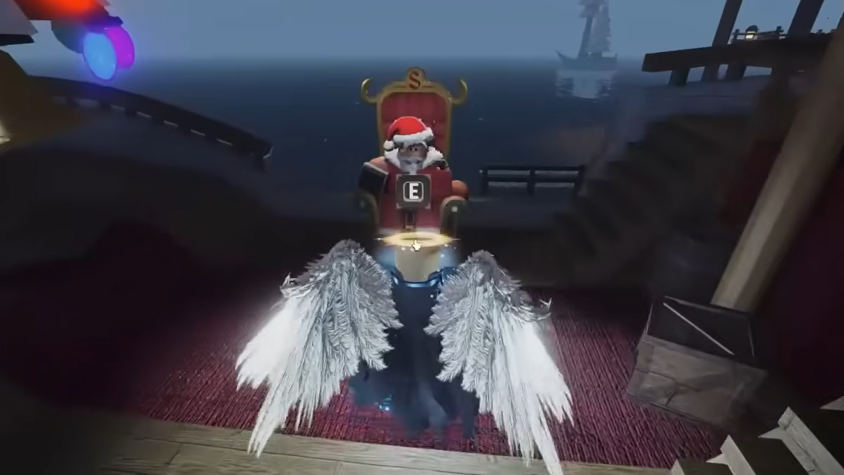 Step 3: After you spawn in, walk to the docks directly next to the spawn point. Santa is on a festive boat moored there.