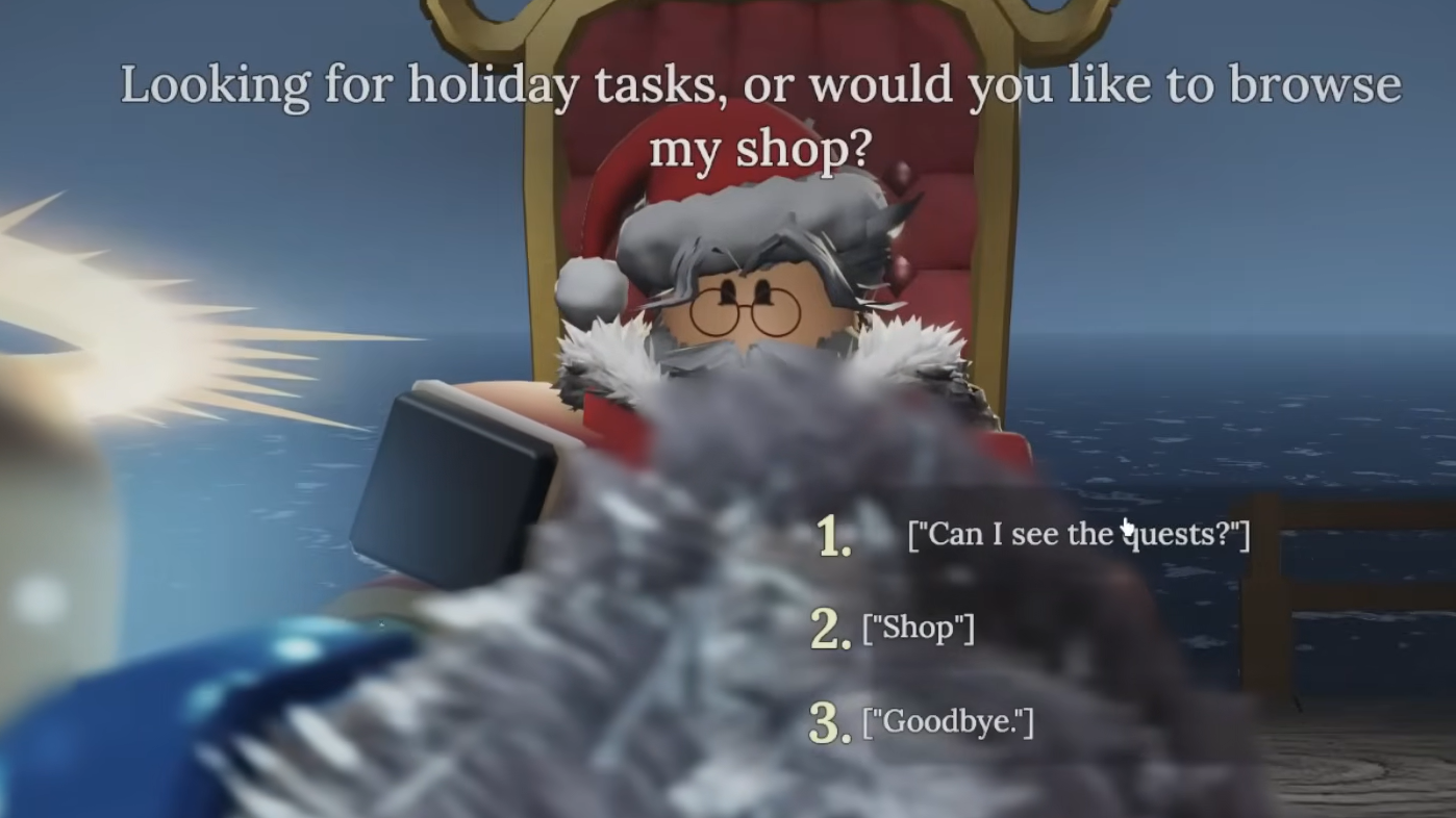 Each completed quest rewards XMas Tickets. These tickets are the only currency accepted by Santa’s Shop and are used to buy Christmas-themed potions, totems, race rerolls, weapon blueprints, and two limited pickaxes.