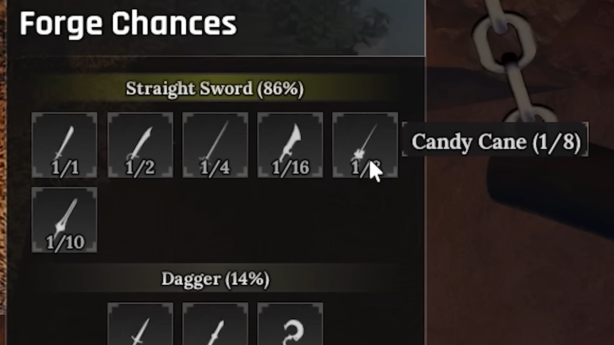 - Ore quantity – Adding more ore increases the odds of rolling heavier weapon classes (Great Swords, Great Axes, Colossal Swords) and reduces the odds of lighter classes like daggers.