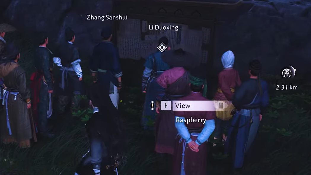 Step 2: Follow the first quest marker out of Harvestfall Village. You will be led to Jun Bu Jian’s last known location. These are usually small hubs or travel routes where townsfolk or bystanders have just witnessed him in action.