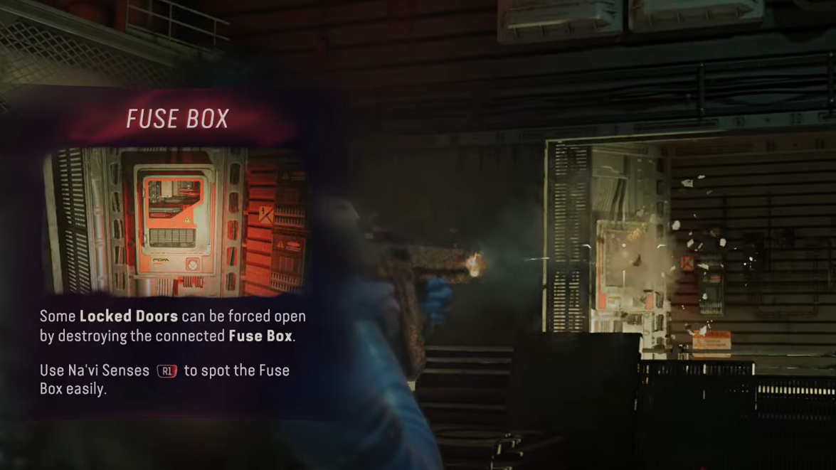 Step 1: In the Control Room, look for a nearby Maintenance Room. Enter it and locate the Fuse Box mounted on the right-hand wall. Fuse Boxes act as destructible locks that control powered doors in the facility.