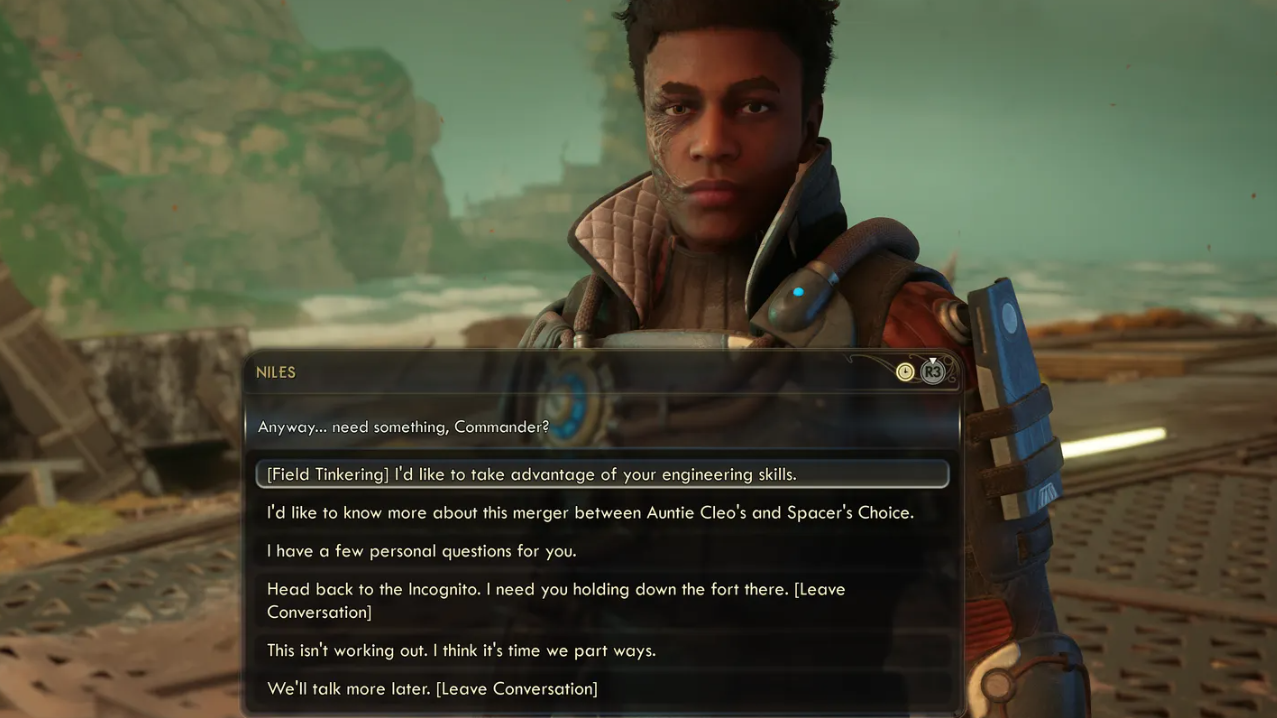 There are no romance routes for any companion. You won’t unlock courtship dialogue trees, intimacy scenes, or approval-based romance payoffs. The game’s own companion reveal explicitly frames the crew as non-romanceable, shutting down the idea of “sleeping with them” and setting expectations up front.