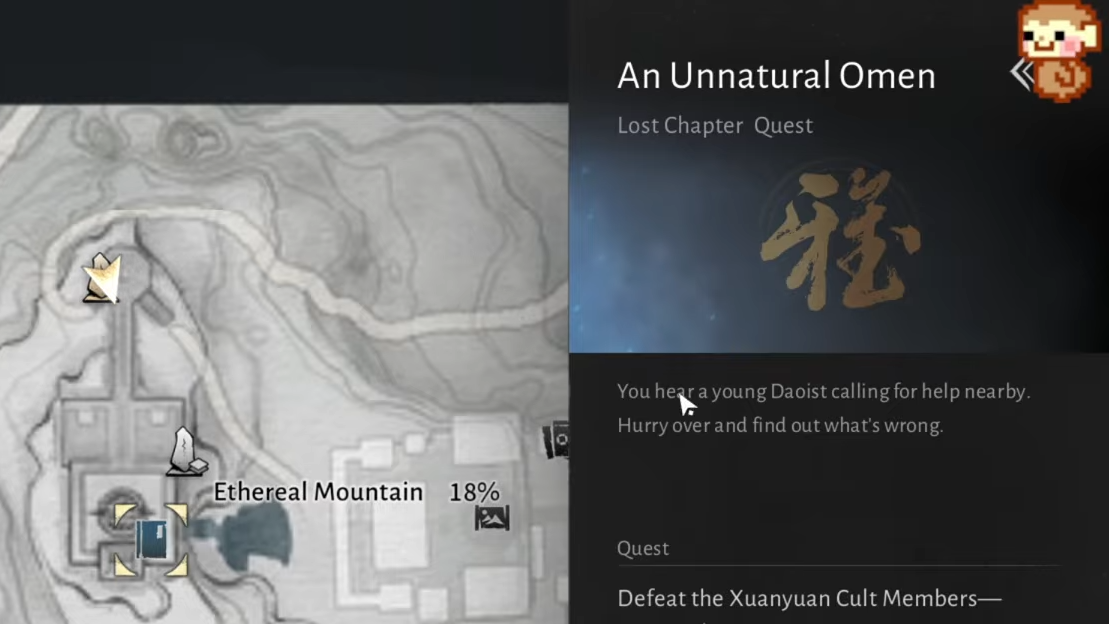 Once you clear the Xuanyuan Cultists on the terrace and rescue Suan Sanchun, the quest forces you below ground. Ethereal Mountain hides an elaborate Daoist mechanism built around the Bagua (Eight Trigrams) and the Northern Dipper stars. Mechanically, this takes the form of environmental puzzles and three separate treasure choices. Thematically, it is about three different ways fate can go wrong.