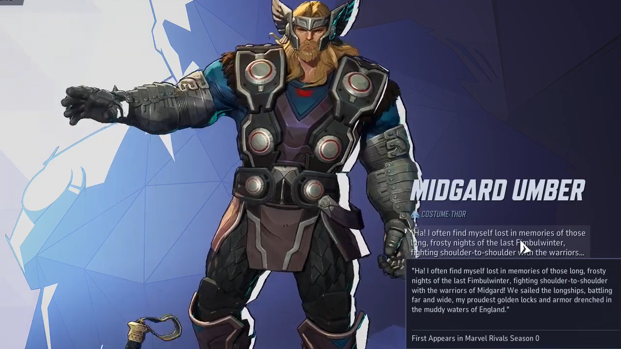 Step 4: Open Thor's hero menu and equip Midgard Umber from his costume list to confirm it is live on your account.