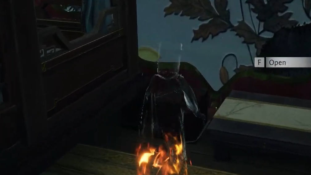 Step 7: In the following room, where two walking NPCs shuttle between adjacent spaces, use the lamp or the corners near it as a safe waiting spot. Patient players can wait until both walkers are briefly in the same room, then move through the empty doorway to the far side. Continue along the left edge, behind the seated guests, until you reach the final bedroom.