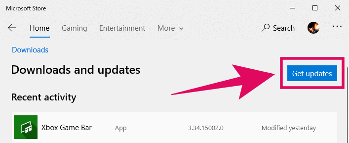Open ‘Microsoft Store’ on your Windows 10 PC and go to ‘Downloads and updates’ section from the Store’s ‘three-dot menu’ button.