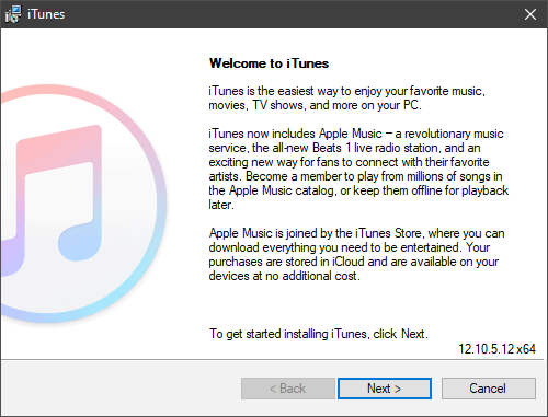 If you previously installed iTunes by downloading the .exe installer file from apple.com/itunes, then you need to manually download the iTunes 12.10.5 installer file directly from the links below and install the software again. Fret not! It’ll not remove any of your backups or other data in iTunes.