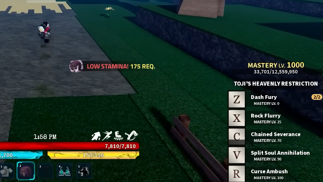 Cursed Ambush is the move that recreates Toji's inverse spear of heaven finisher. It pulls a target into a cutscene, which means it is strong against PvE bosses but easier to dodge or cancel in PvP since you need to walk into an opponent during the blink animation.