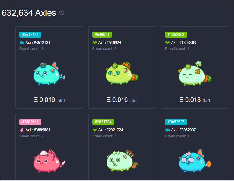 Axie Infinity is a game where you grow, breed, and battle Axies – cute, little monsters that’ll remind users of Pokemons and mythological creatures like Chimera. Axie Marketplace is where you can buy and sell these little monsters. Apart from Axies, you can also buy other game-related stuff like plots or other in-game items.