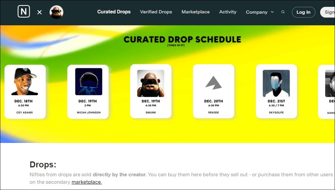 They have a rigorous process to add artists to their marketplace. The collections are divided into Curated, Verified artists, and Unverified artists. Curated collections are dropped every three weeks.
