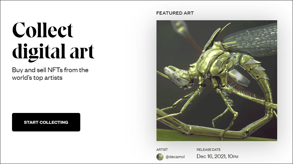 Quite similar to Rarible yet not so, SuperRare is another marketplace on the Ethereum blockchain. But it’s the first on our list that’s not as open as OpenSea or Rarible. SuperRare positions itself as a curated art gallery, making it a highly coveted marketplace to be. It’s especially a marketplace that focuses more on the CryptoArt aspect of NFTs. Even the marketplace itself has a very minimal look. So, your senses aren’t overwhelmed with all kinds of NFTs all at once.