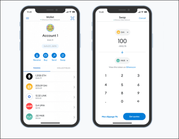 The wallet also boasts a built-in feature to directly swap your Ethereum tokens. It also lets you switch between different gas prices depending on the type of transaction. The browser extension also supports hardware wallets Trezor and Ledger. It also supports debit cards and bank transfers to buy crypto in over 60 countries.