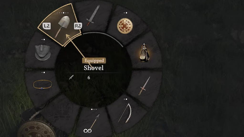 Step 1: Equip a basic shovel from your inventory before approaching the island. The dig interaction will not appear unless a shovel is currently equipped.