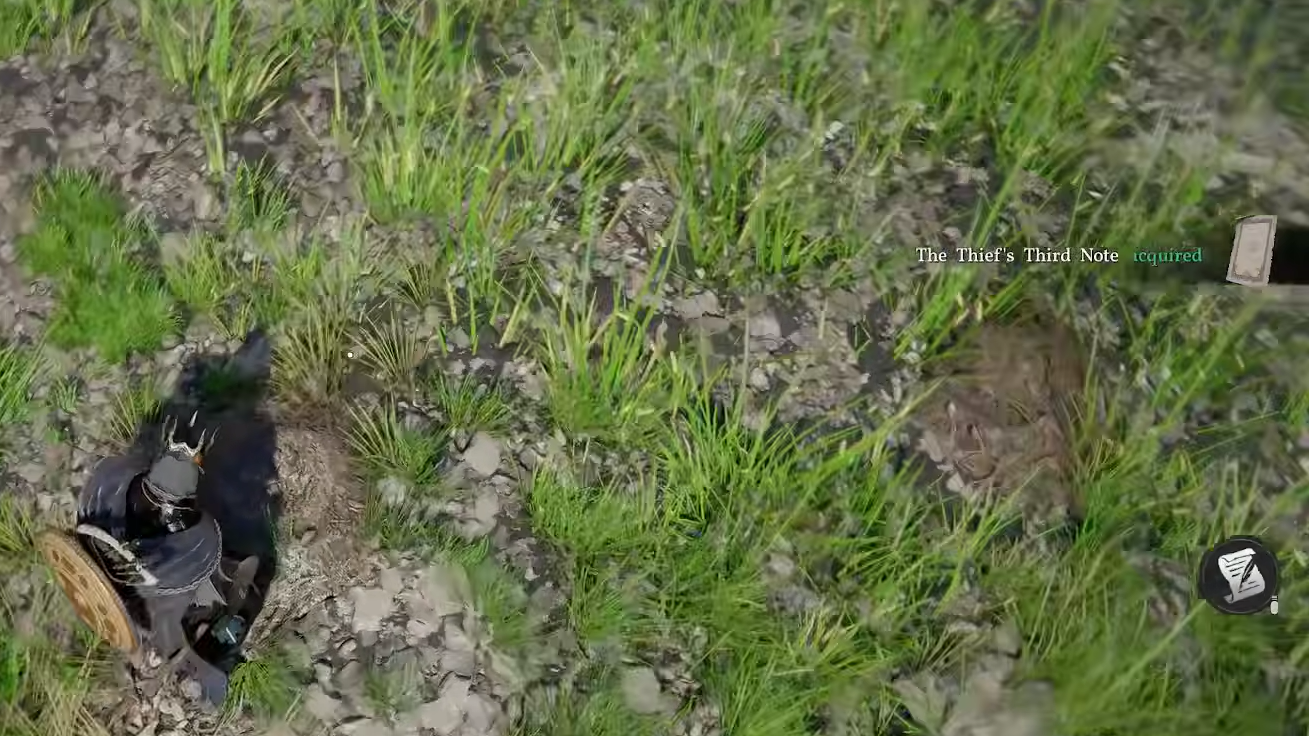 Step 3: Approach each mound until the dig prompt appears, then dig. Continue through the piles until you pull up The Thief's Third Note.