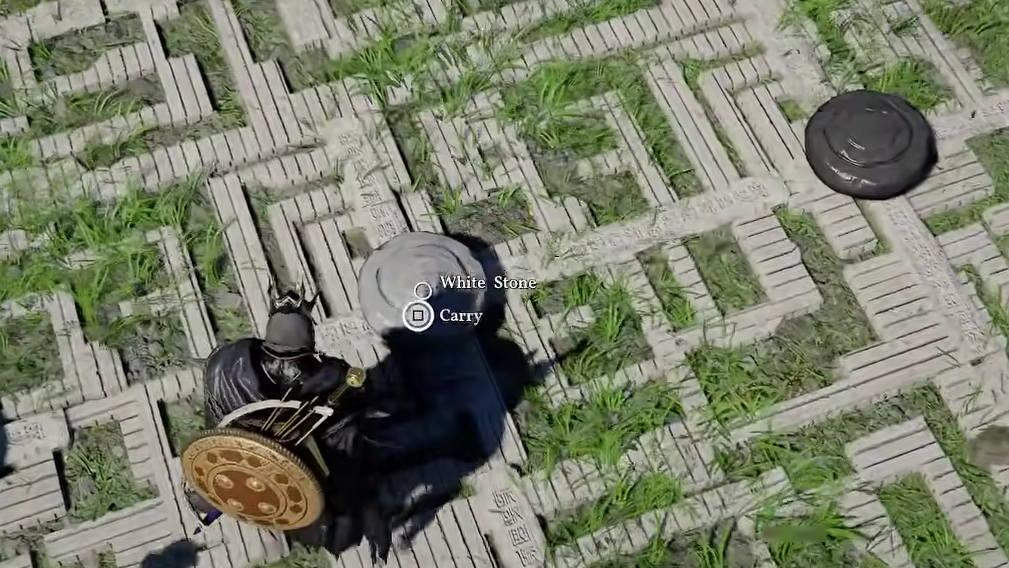 Step 2: Equip your lantern and raise it near the stones. The correct white stone will be highlighted, distinguishing it from the others on the board.