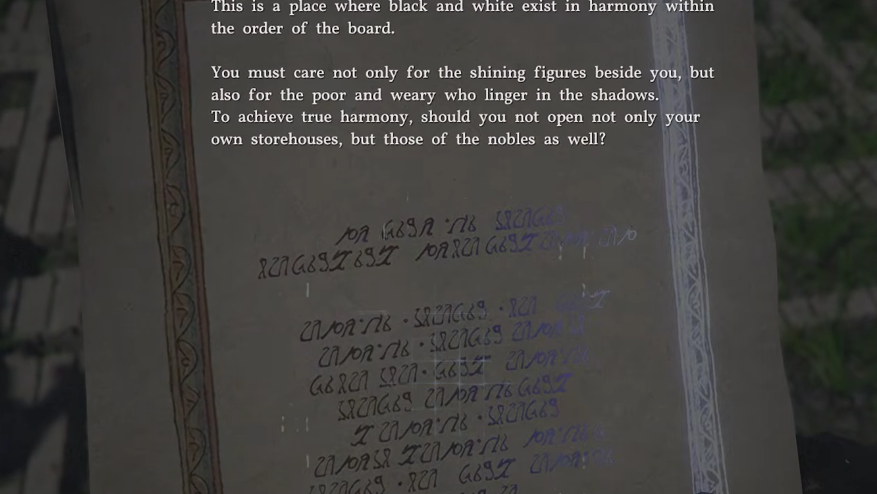 Step 1: Open your minimap and locate the purple scroll icon near the board of stones. That marker pinpoints the row where the clue is hidden.