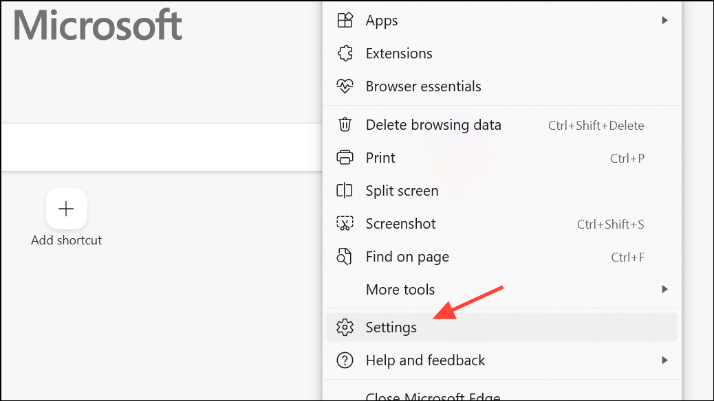 Step 1: In Microsoft Edge, strict tracking prevention can trigger YouTube’s adblock warnings even if no ad blocker is present. Open Edge, click the three dots on the top right, and then select Settings in the dropdown menu.