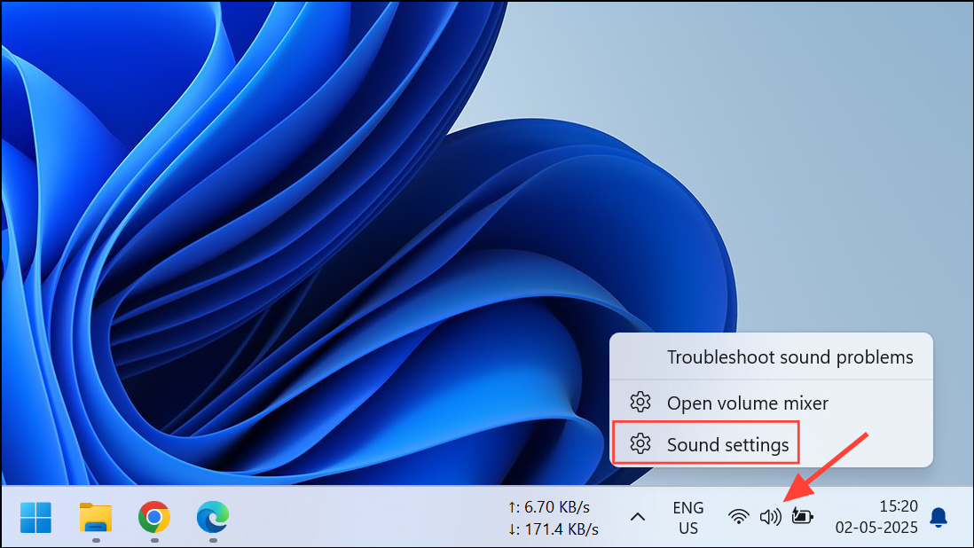 Step 1: Right-click the speaker icon in the system tray at the bottom-right corner of your Windows desktop. Select Sounds or Open Sound settings from the context menu.