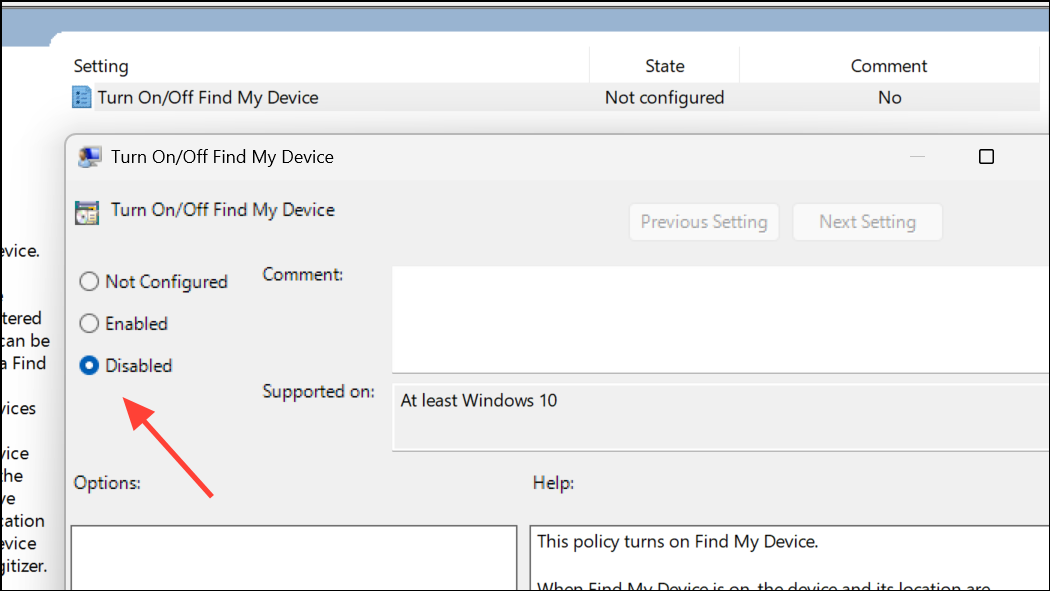 Turn Off Find My Device Using Group Policy Editor